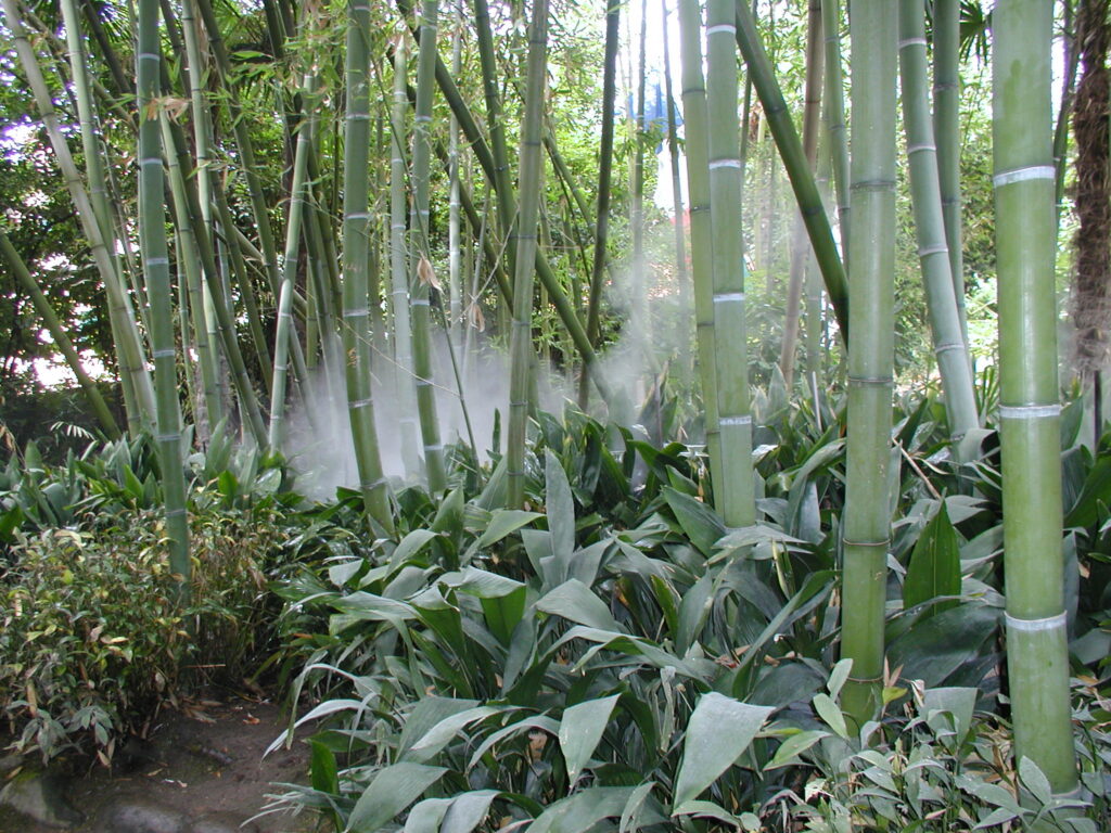 🌴 Tropische zone – hoge bamboe en exotische palmen creëren een mini-jungle.