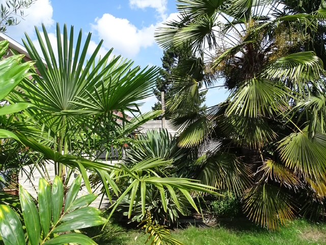 Exotentuin met meer dan 20 soorten winterharde palmen, enkele soorten bananen, vijgen, druiven, kiwi’s, pawpaw, enz.